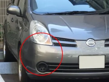 縁石や駐車時の接触によるフロントバンパーのこすりキズ修理。