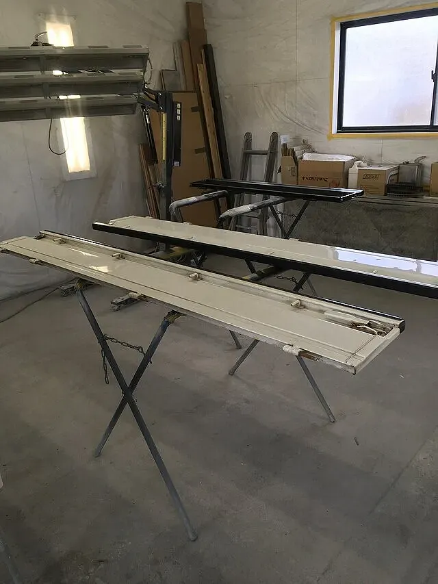 今回は、キズ・ヘコミ修理が必要な部分を取り外してから対応していきます。取り外しが終わったら、まずは下地処理から対応。ここは職人の腕の見せ所なんです。ここで技術が低かったり、雑な対応をすると仕上がりがデコボコになったり、色ムラが出来てしまうので慎重に実施します。ヘコミ修理が終われば次はいよいよ塗装作業。車両の色に合うように調色し、何度も塗り重ねます。時間のかかる作業ですが、仕上がりがキレイになるよう、丁寧に作業していきます。