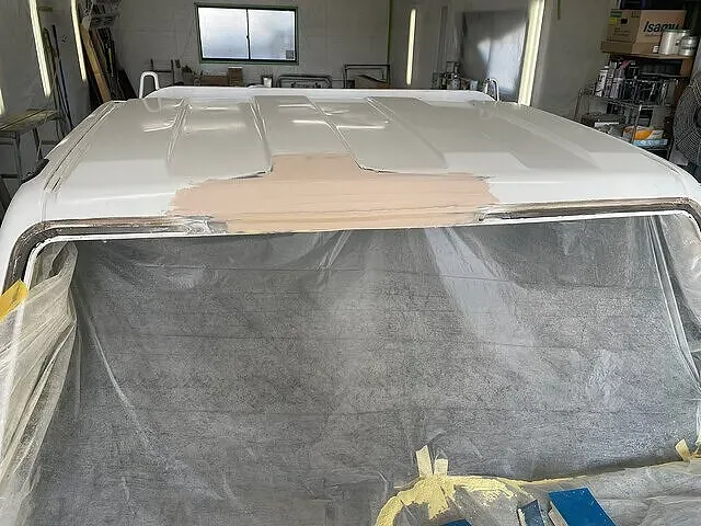ルーフの鈑金塗装(キズ・ヘコミ修理)をしていきます。